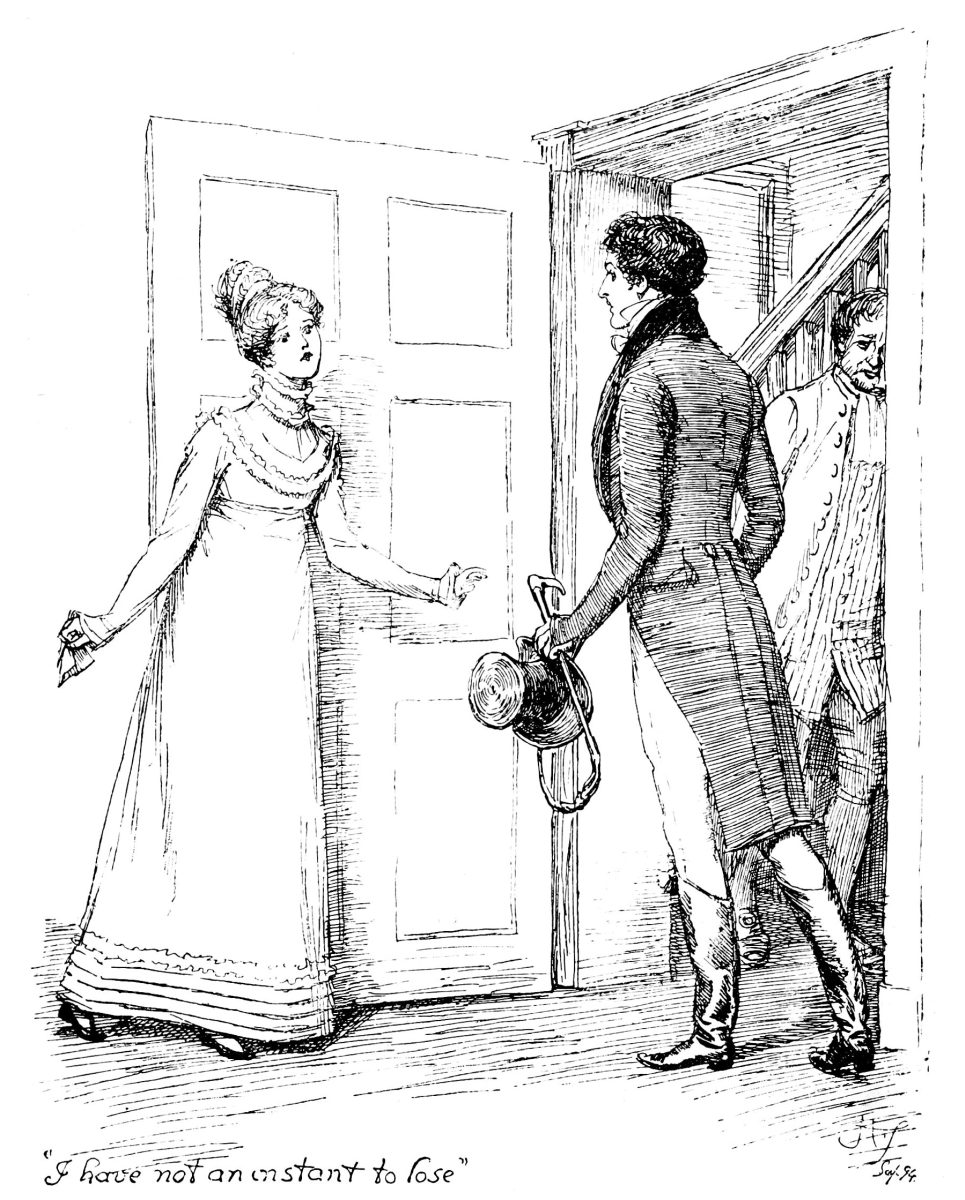 “By this time, my dearest sister, you have received my hurried letter; I wish this may be more intelligible, but though not confined for time, my head is so bewildered that I cannot answer for being coherent. Dearest Lizzy, I hardly know what I would write, but I have bad news for you, and it cannot be delayed. Imprudent as a marriage between Mr. Wickham and our poor Lydia would be, we are now anxious to be assured it has taken place, for there is but too much reason to fear they are not gone to Scotland. Colonel Forster came yesterday, having left Brighton the day before, not many hours after the express. Though Lydia’s short letter to Mrs. F. gave them to understand that they were going to Gretna Green, something was dropped by Denny expressing his belief that W. never intended to go there, or to marry Lydia at all, which was repeated to Colonel F., who, instantly taking the alarm, set off from B., intending to trace their route. He did trace them easily to Clapham, but no farther; for on entering that place, they removed into a hackney-coach, and dismissed the chaise that brought them from Epsom. All that is known after this is, that they were seen to continue the London road. I know not what to think. After making every possible inquiry on that side of London, Colonel F. came on into Hertfordshire, anxiously renewing them at all the turnpikes, and at the inns in Barnet and Hatfield, but without any success,—no such people had been seen to pass through. With the kindest concern he came on to Longbourn, and broke his apprehensions to us in a manner most creditable to his heart. I am sincerely grieved for him and Mrs. F.; but no one can throw any blame on them. Our distress, my dear Lizzy, is very great. My father and mother believe the worst, but I cannot think so ill of him. Many circumstances might make it more eligible for them to be married privately in town than to pursue their first plan; and even if he could form such a design against a young woman of Lydia’s connections, which is not likely, can I suppose her so lost to everything? Impossible! I grieve to find, however, that Colonel F. is not disposed to depend upon their marriage: he shook his head when I expressed my hopes, and said he feared W. was not a man to be trusted. My poor mother is really ill, and keeps her room. Could she exert herself, it would be better, but this is not to be expected; and as to my father, I never in my life saw him so affected. Poor Kitty has anger for having concealed their attachment; but as it was a matter of confidence, one cannot wonder. I am truly glad, dearest Lizzy, that you have been spared something of these distressing scenes; but now, as the first shock is over, shall I own that I long for your return? I am not so selfish, however, as to press for it, if inconvenient. Adieu! I take up my pen again to do, what I have just told you I would not; but circumstances are such, that I cannot help earnestly begging you all to come here as soon as possible. I know my dear uncle and aunt so well, that I am not afraid of requesting it, though I have still something more to ask of the former. My father is going to London with Colonel Forster instantly, to try to discover her. What he means to do, I am sure I know not; but his excessive distress will not allow him to pursue any measure in the best and safest way, and Colonel Forster is obliged to be at Brighton again to-morrow evening. In such an exigence my uncle’s advice and assistance would be everything in the world; he will immediately comprehend what I must feel, and I rely upon his goodness.”