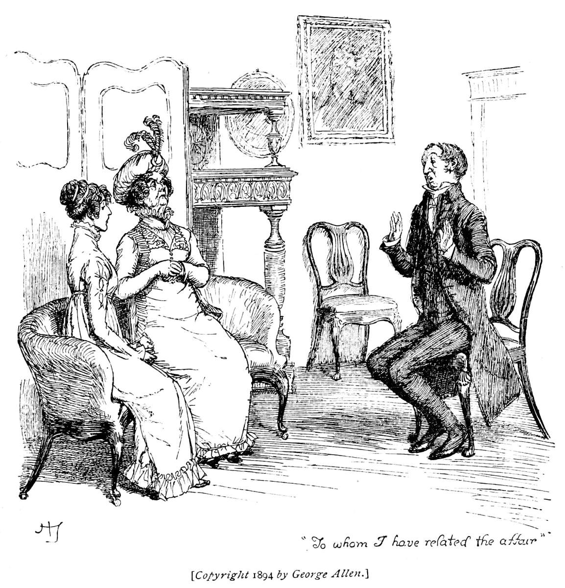 “I feel myself called upon, by our relationship, and my situation in life, to condole with you on the grievous affliction you are now suffering under, of which we were yesterday informed by a letter from Hertfordshire. Be assured, my dear sir, that Mrs. Collins and myself sincerely sympathize with you, and all your respectable family, in your present distress, which must be of the bitterest kind, because proceeding from a cause which no time can remove. No arguments shall be wanting on my part, that can alleviate so severe a misfortune; or that may comfort you, under a circumstance that must be, of all others, most afflicting to a parent’s mind. The death of your daughter would have been a blessing in comparison of this. And it is the more to be lamented, because there is reason to suppose, as my dear Charlotte informs me, that this licentiousness of behaviour in your