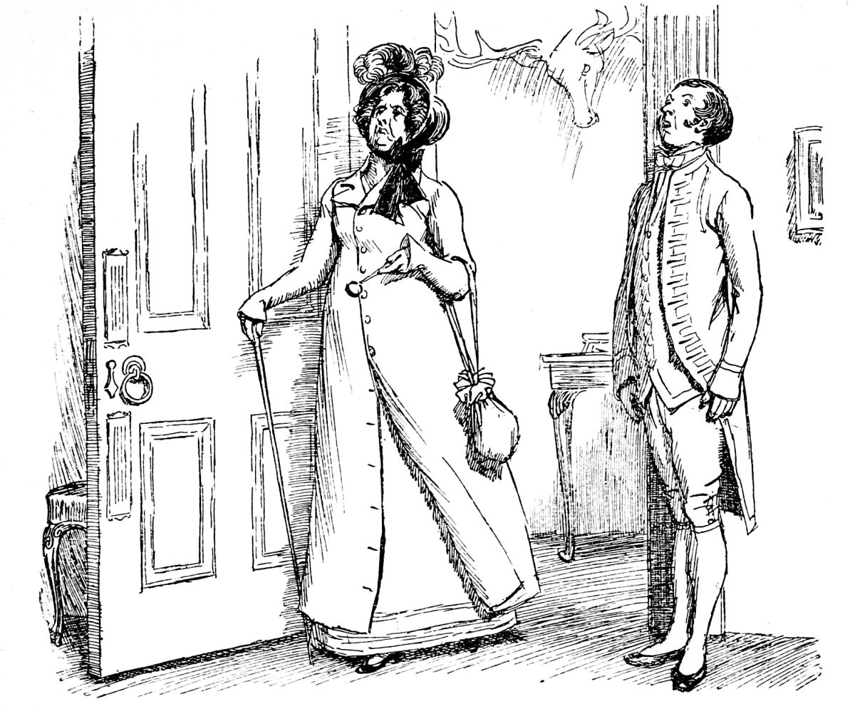 ONE morning, about a week after Bingley’s engagement with Jane had been formed, as he and the females of the family were sitting together in the dining-room, their attention was suddenly drawn to the window by the sound of a carriage; and they perceived a chaise and four driving up the lawn. It was too early in the morning for visitors; and besides, the equipage did not answer to that of any of their neighbours. The horses were post; and neither the carriage, nor the livery of the servant who preceded it, were familiar to them. As it was certain, however, that somebody was coming, Bingley instantly prevailed on Miss Bennet to avoid the confinement of such an intrusion, and walk away with him into the shrubbery. They both set off; and the conjectures of the remaining three continued, though with little satisfaction, till the door was thrown open, and their visitor entered. It was Lady Catherine de Bourgh.